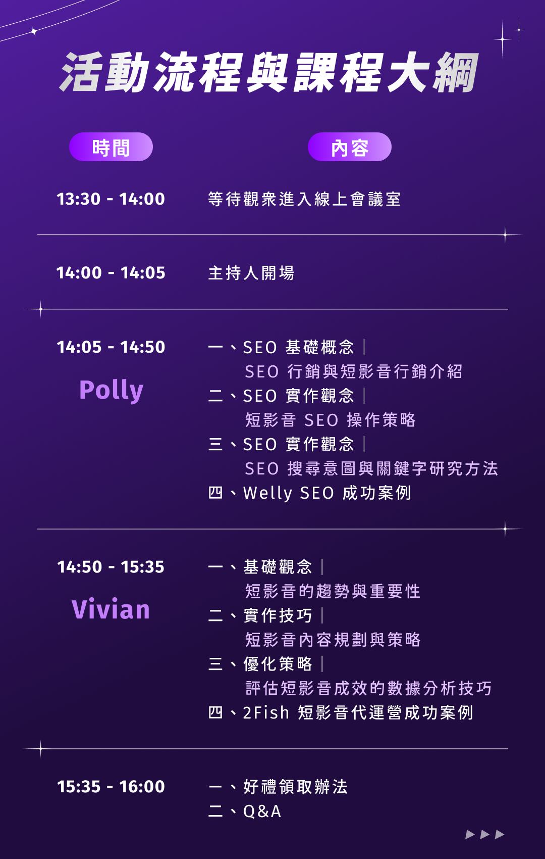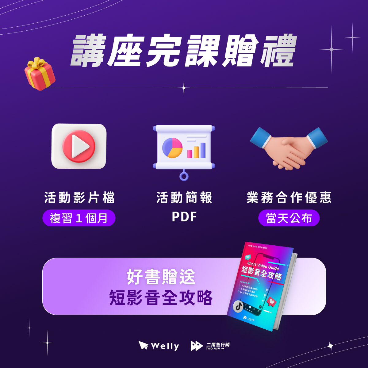 - Welly SEO、2Fish 業務合作優惠(活動當天公佈)